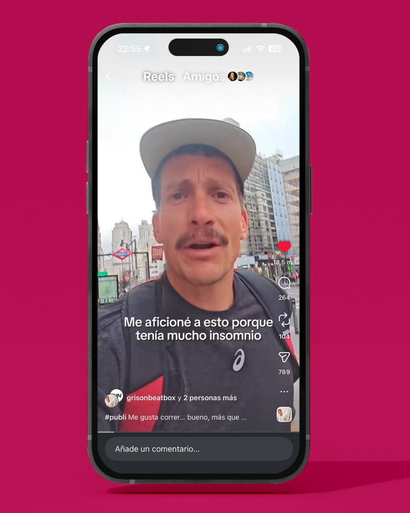 Dirección y edit de videoreel con Grison Beatbox, Runnerinn y Asics: historia real + humor + integración natural de marca. Alguien normal explicando por qué correr le ayuda a vivir un poco mejor.
